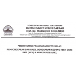 Berdasarkan Pengumuman Pelaksanaan penjualan Pembongkaran dan Hasil Bongkaran Gedung High Care Unit (HCU) dan Hemodialisa (HD). Dengan ini diberitahukan bahwa RSUD Prof. Dr. Margono Soekarjo Purwokerto akan menyelenggarakan lelang dengan kete...