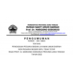 Sesuai dengan pengumuman Nomor 800 / 09643 Tentang Pengadaan Pegawai Badan Layanan Umum Daerah Non Pegawai Negeri Sipil Tidak Tetap RSUD Prof. Dr. Margono Soekarjo Provinsi Jawa Tengah Tahun 2022. Dengan ini diberitahukan bahwa RSUD Prof. Dr. Marg...
