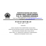 Sesuai dengan pengumuman Nomor 800 / 11875 Tentang Hasil Seleksi Tes Kompetensi Dasar (TKD) Pengadaan Pegawai Badan Layanan Umum Daerah Non Pegawai Negeri Sipil Tidak Tetap RSUD Prof. Dr. Margono Soekarjo Provinsi Jawa Tengah Periode November Tahu...