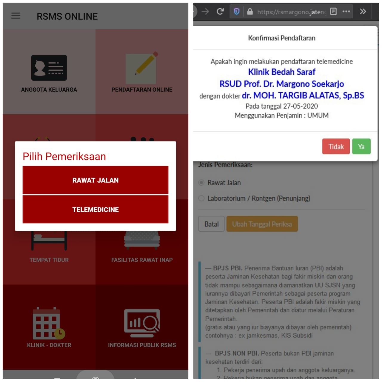 Pandemi Covid-19 yang telah berlangsung kurang lebih 3 bulan sehingga ada pembatasan aktifitas atau mobilitas masyarakat untuk memutus rantai penyebaran Covid-19 maka sesuai edaran Menkes No. HK.02.01/Menkes/303/2020 tentang Penyelenggaraan Pelayanan Kesehatan melalui Pemanfaan Tekhnologi Informasi dan Komunikasi dalam rangka pencegahan penyebaran Covid-19 mendorong RSUD Prof.Dr.Margono Soekarjo membuat terobosan baru untuk tetap memberikan pelayanan terbaik pada masyarakat khususnya pelayanan Dokter Spesialis agar masyarakat yang membutuhkan pelayanan melalui Telemedicine tanpa harus hadir secara fisik ke RS.